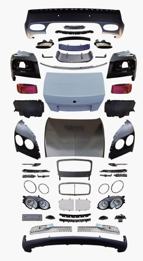 طقم بودي كيت متكامل وفاخر لسيارة بنتلي فلاينغ سبير، يوفّر تحديثًا شاملاً إلى تصميم 2019 مع الحفاظ على الطابع الكلاسيكي الفخم والأناقة المميزة. يشمل الصدامات الأمامية والخلفية، الشبك، الكبوت، المصابيح، الرفارف، الزوائد، القطع التجميلية ومجموعة التثبيت، مع تصنيع عالي الدقة لضمان تركيب مثالي وتناسق مع تصميم السيارة الأصلي. مناسب لمشاريع التعديل الاحترافية والورش التي تبحث عن ترقية أنيقة بمستوى جودة ممتاز.