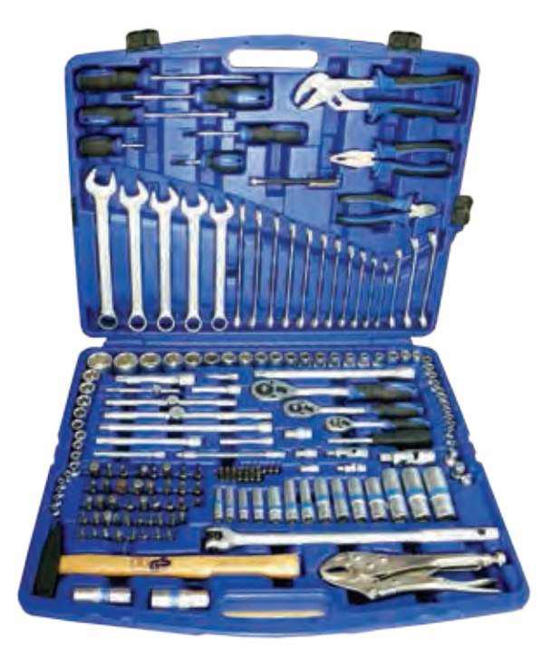 طقم عدة متكامل وعالي الجودة مصمم لأعمال الصيانة الميكانيكية، السيارات، والورش. يأتي داخل شنطة قوية ومنظمة تسهّل حمل الأدوات وترتيبها. يحتوي الطقم على مجموعة كبيرة من السوكيت، المفاتيح، البتات، والكماشات بمقاسات متعددة لتناسب مختلف أعمال الفك والتركيب بدقة وكفاءة.