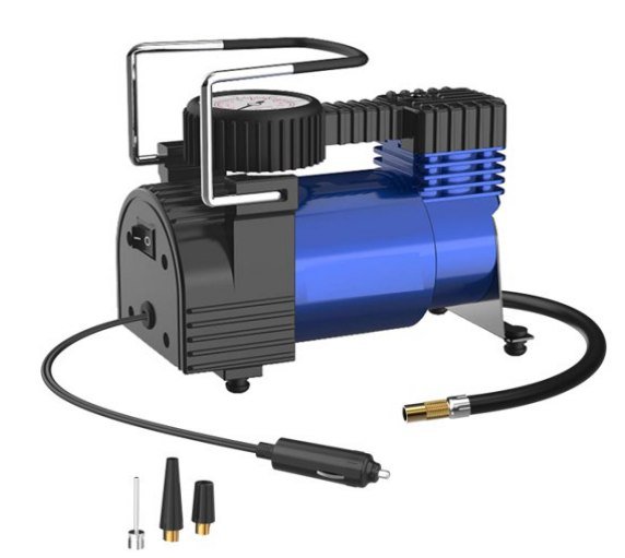كمبروسر هواء عملي ومحمول مصمم لتوفير حل سريع لنفخ إطارات السيارات أثناء السفر أو في حالات الطوارئ. يتميز بتصميم مدمج مع مقبض علوي لسهولة الحمل، كما يعمل بقدرة قوية تساعد على تعبئة الإطارات بسرعة وكفاءة.