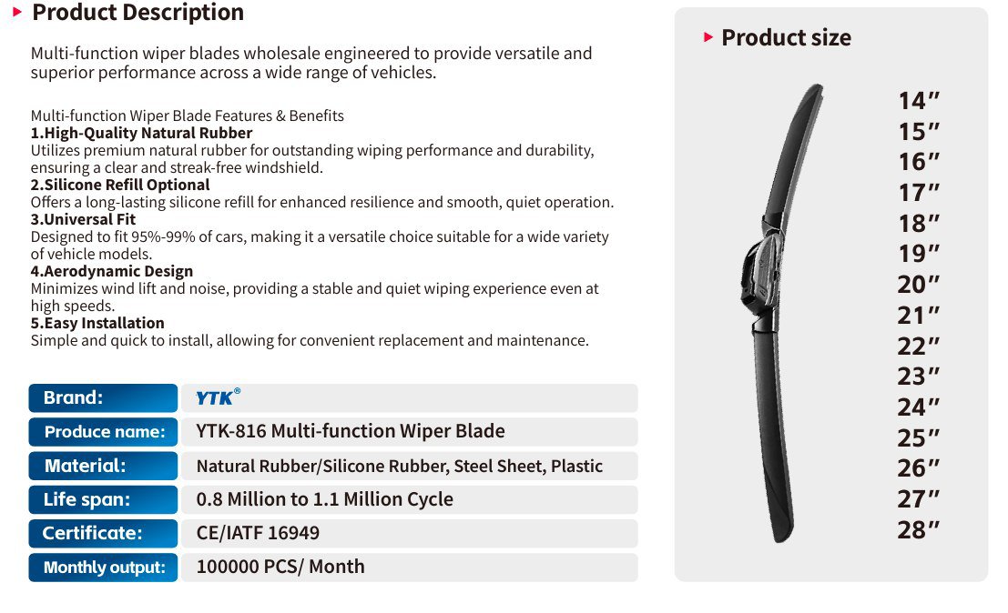الموديل: YTK-816 Multi-Function Wiper Blade