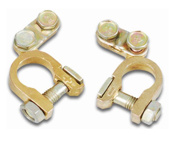 مشبك بطارية مصنوع من الألمنيوم مع طلاء نحاسي لتحسين التوصيل الكهربائي وزيادة مقاومة التآكل. يوفر تثبيتاً قوياً وآمناً على أقطاب البطارية ويتميز بقدرة تحمل تيار تصل إلى 600 أمبير، مما يجعله مناسباً للاستخدام في المركبات التي تعمل بجهد 24 فولت. تصميم متين وسهل التركيب لضمان اتصال كهربائي مستقر. الوزن الصافي للزوج 65 غرام.